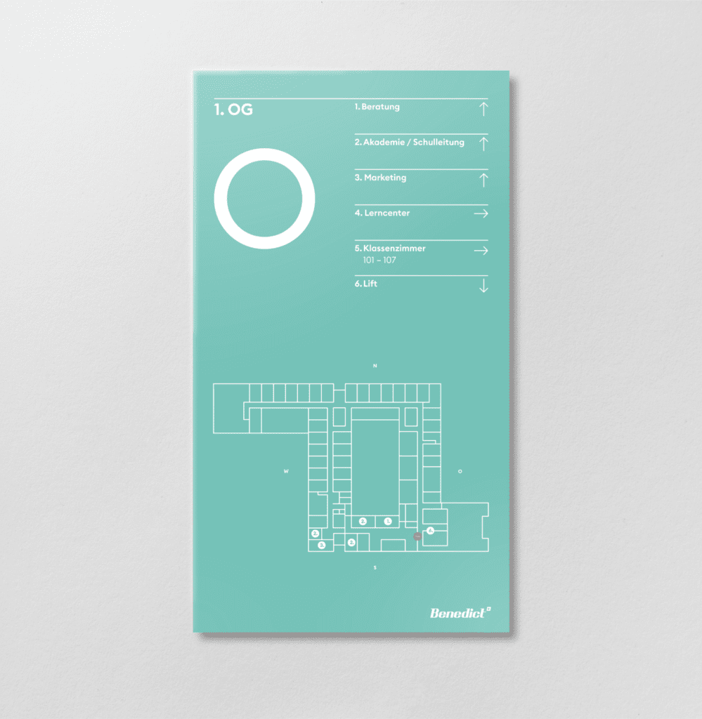 „Schritt für Schritt zum Erfolg“ – dieses Benedict-Motto spiegelt sich auch in der Gestaltung wider: Die sogenannte Erfolgslinie zieht sich als grafisches Element durch das gesamte Erscheinungsbild. Sie visualisiert individuelle Lernwege und signalisiert, dass Fortschritt nicht standardisiert verläuft – sondern persönlich und flexibel ist.