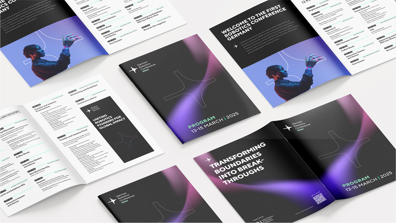 Als sekundäres Designelement wurde ein dynamischer Farbverlauf entwickelt, der die Verschmelzung von Disziplinen, das Zusammenspiel von Mensch und Maschine sowie die Energie intelligenter Systeme visualisiert. Die Farbverläufe stehen für Innovation und Interaktion – sie verleihen der visuellen Sprache von RIG Tiefe, Spannung und Bewegung.